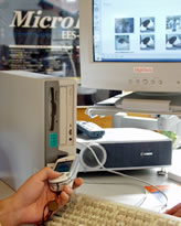 | 遊びに行った翌日、Benibana/Silverが届きましたとのメイルあり。こんな写真が貼付されてきました(^_^) 「おおっ、確かに青く光っている〜っ! Windows CE 動いてる〜っ」 どんな風に使われて行くんでしょうか、ルータだとかインターネットサーバとかじゃない、もっと、本当の意味でのMicroPCとして可能性を、ぜひ見てみたい機械です。 |