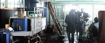 | 「一人では酒は造れません」誠実で真面目な酒造り。今までの行程を見直し、杜氏さんをはじめ蔵人さんの協力を取りつけながら、自分の描くお酒を造っていく、そこが難しいとのこと。 写真は「釜」と「麹室」です。釜の左の部屋は杜氏さんが寝泊まりする部屋だそうです。 |