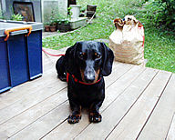 | 匂いにつられ、函館からハナも来ちゃいました〜っと思うほど似ている坊平犬「ロッキー」。まろ眉の有無で見分けてください。 「まるこげ野菜」ができあがりました。 |