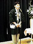 | 写真の中にニセ蔵元が〜(笑)「綿屋」としてハッピを来ていた綺麗な女性、どこかでみたことあるなぁ〜と思ったら、なんと仙台日本酒倶楽部でお会いしたことがある方でした。な、なんでそんなところに〜(笑) 花束を持っている方が絆のおかみさんです。刈穂の親戚がお花屋をされているということでプレゼント。なんかアットホームでいい感じですね。おかみさんも嬉しそう(^_^) |