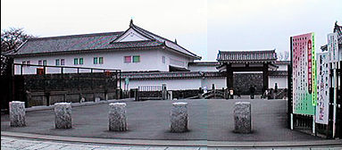 山形市美術館の方向から堀を渡って正面の門に進みます。